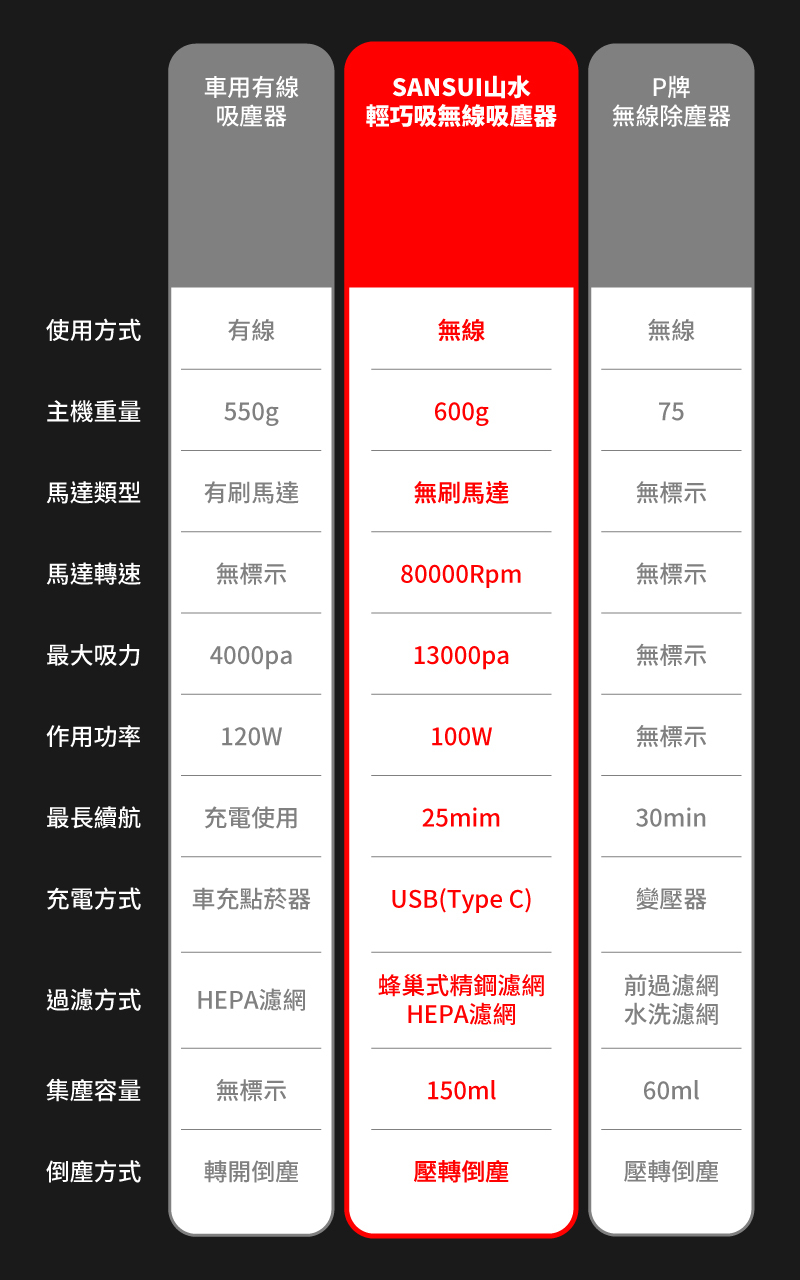 山水SANSUI輕淨吸迷你無線吸塵器保固一年